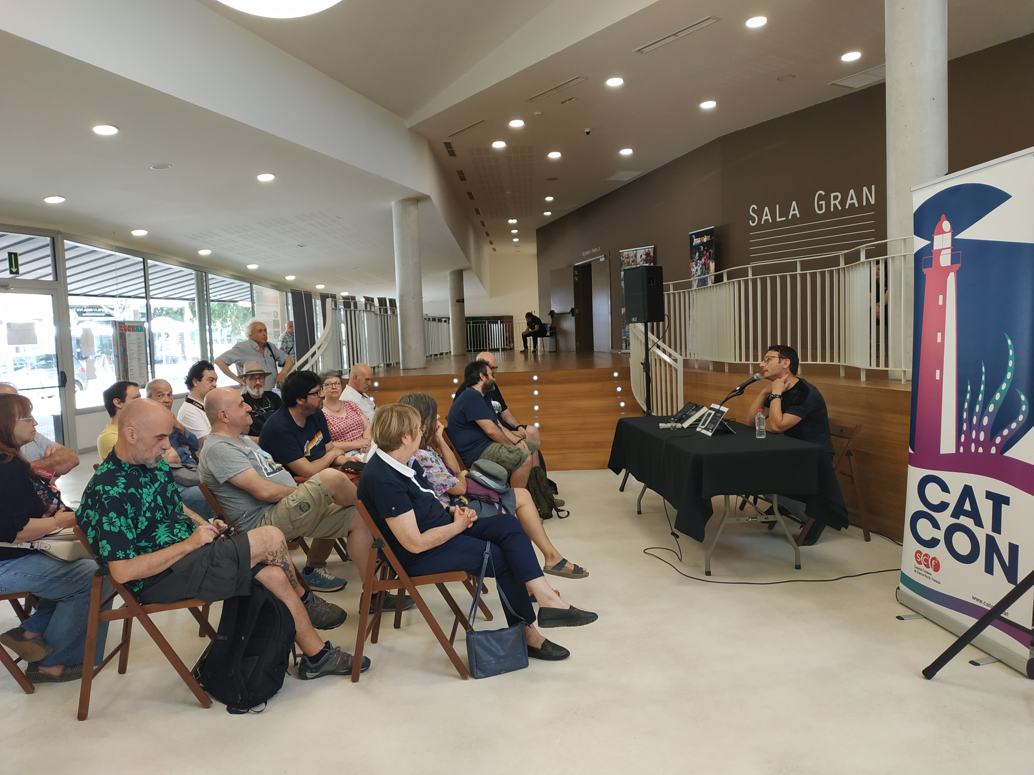 Una de les sessions més atractives va ser la dedicada a les noves veus del fantàstic en català, amb Edgar Cotes, Selena Soro, J. P. Sansaloni, Elena Bartomeu, Ricard Efa i Alister Mairon. Tots ells han publicat les seves primeres novel·les de gènere i il·lustren el bon moment creatiu actual, i l’oportunitat que les editorials, sobretot les especialitzades, estan donant a autors novells. Tot i així, tots coincideixen a remarcar que els brots verds poden durar poc si no es cuiden, i alerten que les traduccions d’autors estrangers tenen molt més pes. És un debat interessant a desenvolupar, que depèn sempre de si es mira el got mig ple o mig buit. Queda molt camí a fer, és evident, però aquest cronista continua pensant que el fantàstic català viu una primavera prolongada i fèrtil.